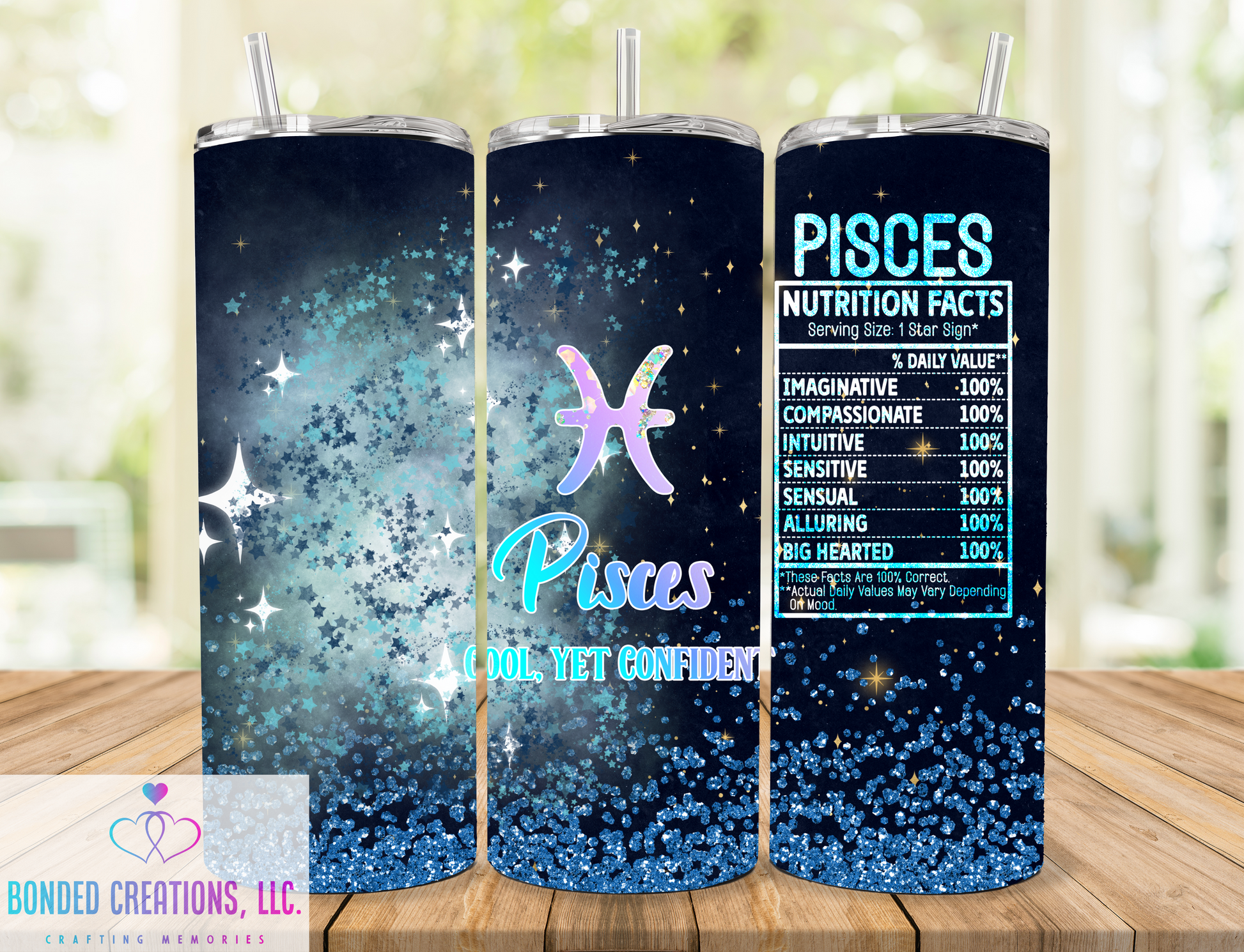 Here's a fun tumbler design that shows off your zodiac signs nutritional facts!